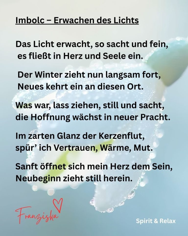 Zu Imbolc habe ich ein paar Zeilen geschrieben, die ich gerne mit euch teilen möchte. Viele Menschen um mich herum machen gerade ein sehr herausfordernde Zeit durch, umso wichtiger ist es zu wissen - das Licht kommt!